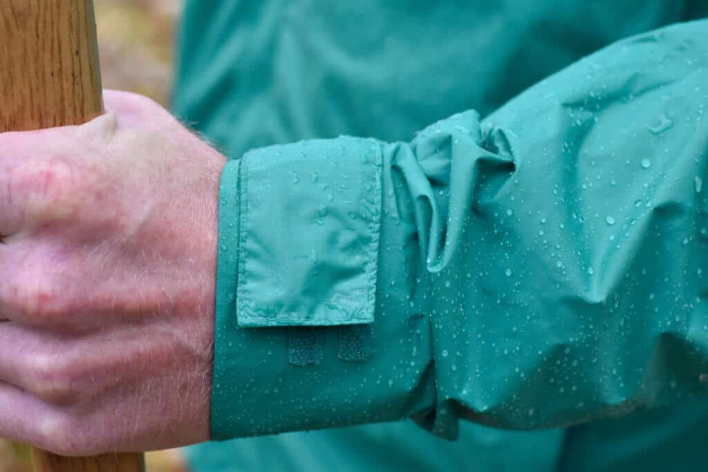 For this review, I was “lucky” enough to be out working in the woodpile when a strong wind picked up and rain fell heavily for nearly an hour. Riding out the sudden squall, the Storm UL kept me both comfortable and dry on top and shed water happily (but not so happily onto my pant legs)! The only parts of my upper body that got wet were my shirt cuffs, but I would owe that to working with my hands and having water run down my wrists even with the Storm UL’s cuffs fastened tightly.